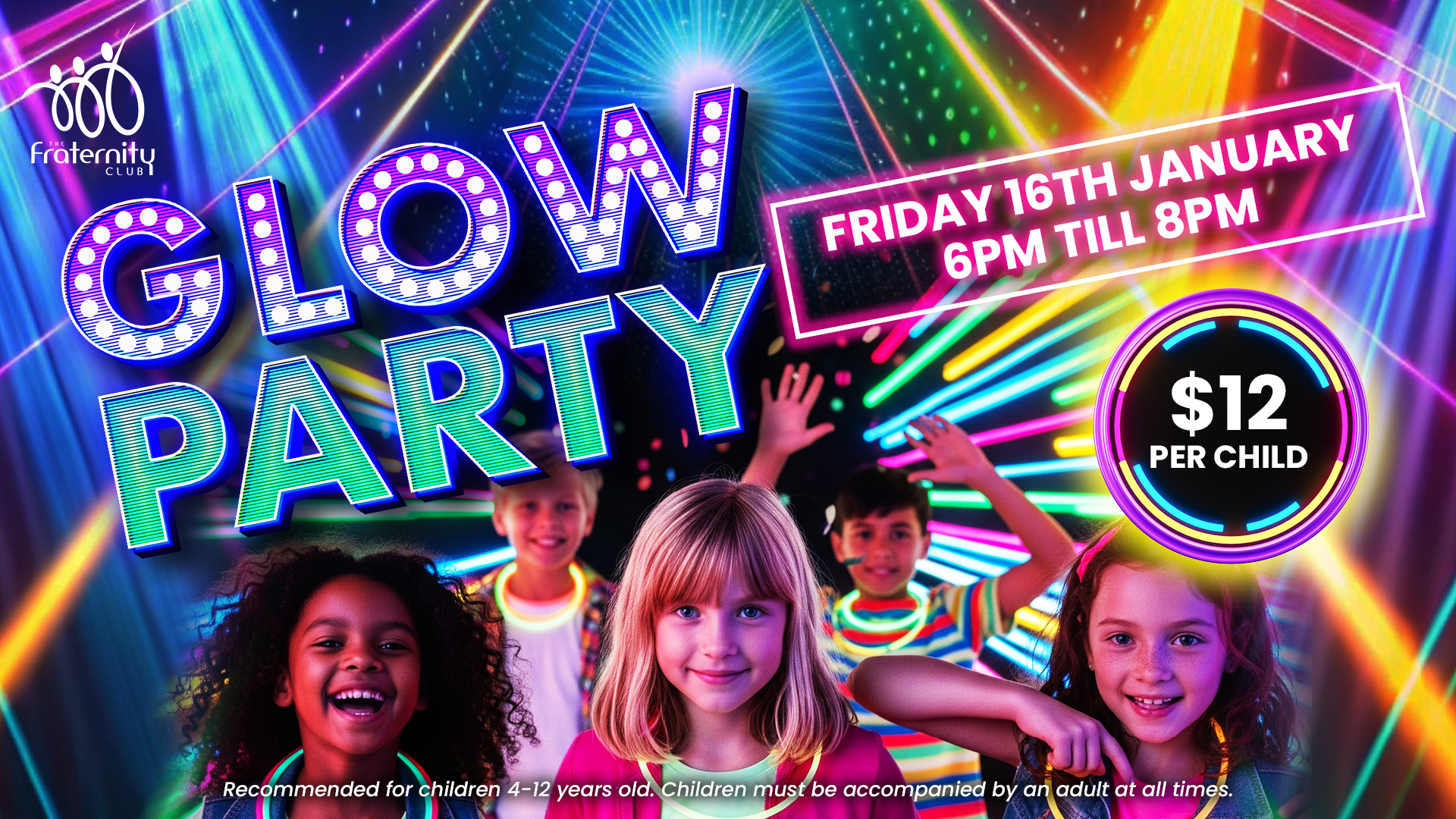 Join us at the Fraternity Club for our next Bambini Glow Disco – now featuring an exciting bright twist!