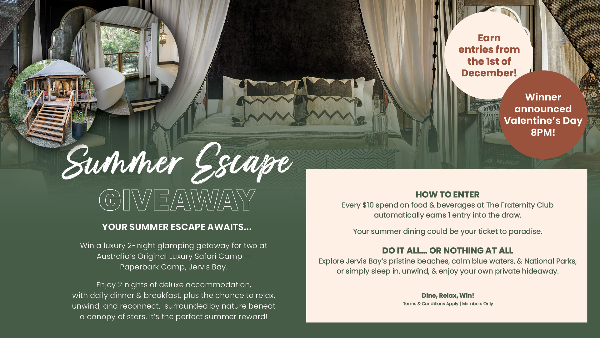 From 1 December 2025, every $10 spent on food and beverages at The Fraternity Club automatically earns 1 entry into the draw.
