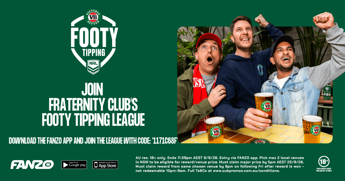 NRL Footy Tipping is now live at Fraternity Club.